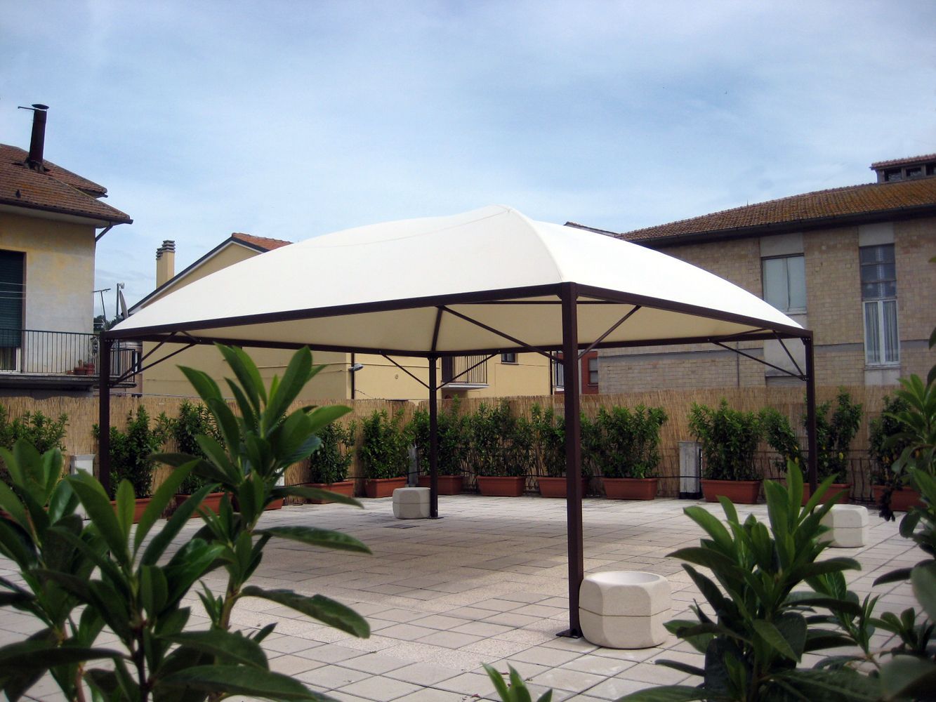Strutture autoportanti da posizionare su terrazzi o spazi esterni per creare ombra o un angolo relax, offrendo riparo e un tocco decorativo. Si possono aggiungere chiusure laterali come tende, teli o vetrate per una maggiore protezione.