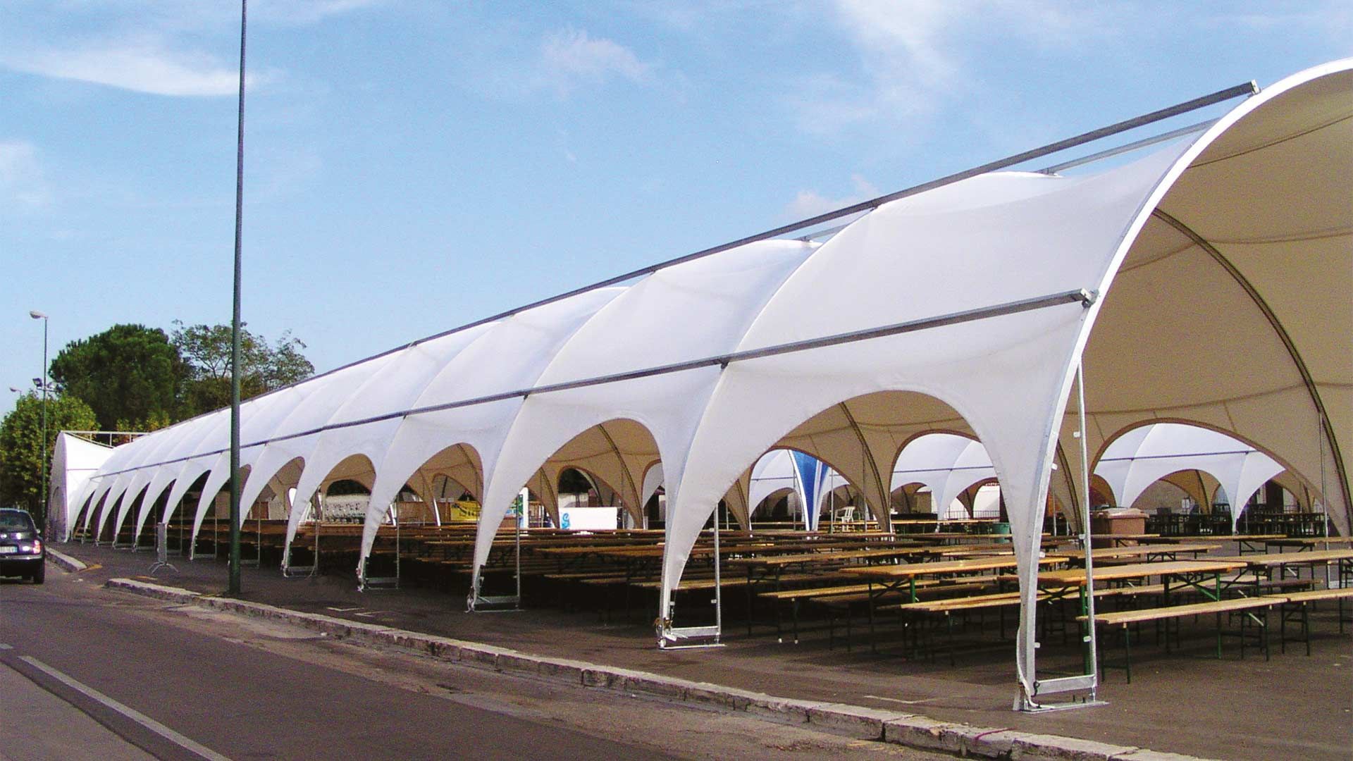 Perfette per manifestazioni, cerimonie, fiere ed attività temporanee, le coperture per eventi proposte da Ideal Arredo offrono stabilità, estetica e facilità di montaggio.
